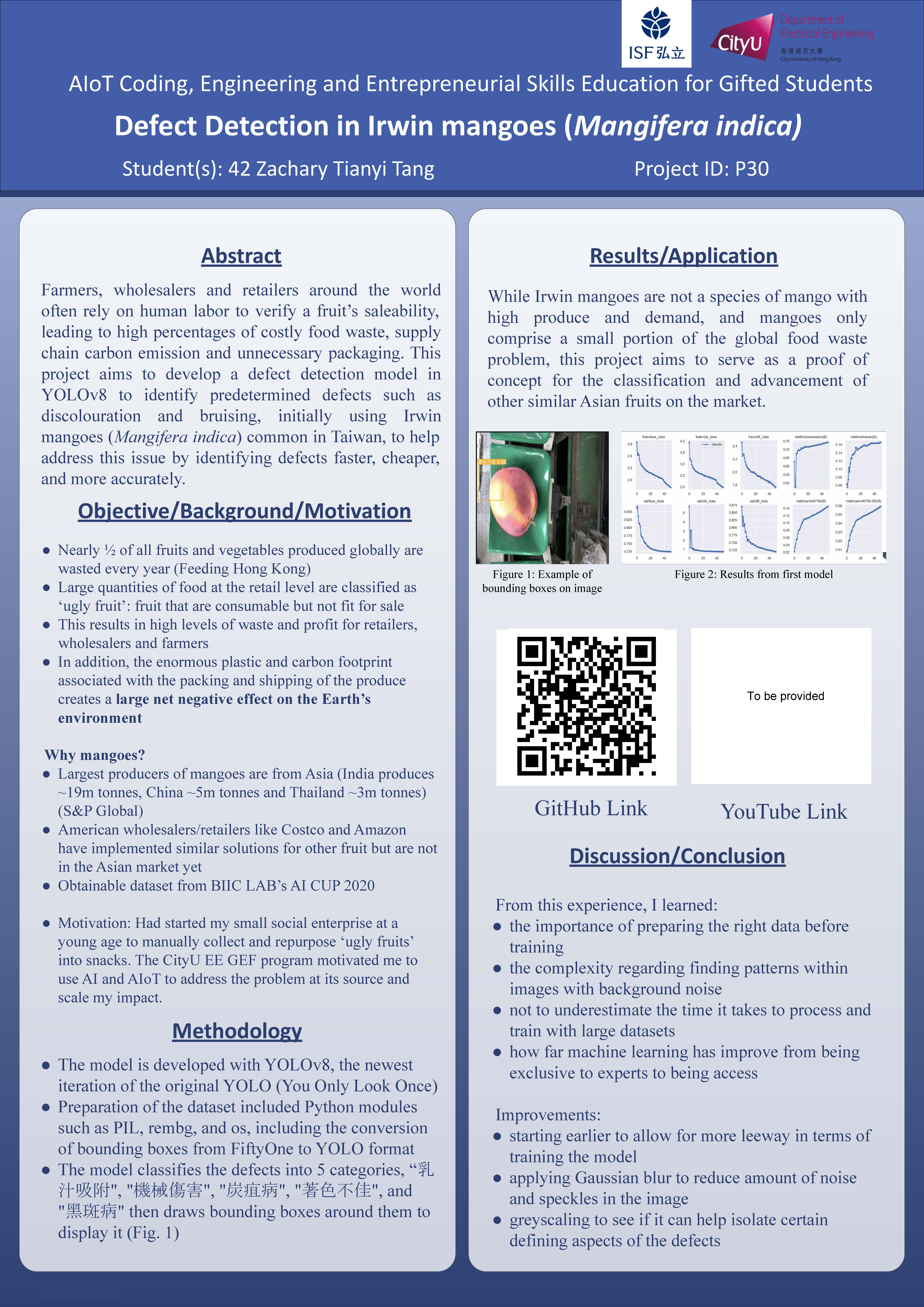 Farmers, wholesalers and retailers around the world often rely on human labor to verify a fruit's saleability, leading to high percentages of costly food waste, supply chain carbon emission and unnecessary packaging. This project aims to develop a defect detection model in YOLOv8 to identify predetermined defects such as discolouration and bruising, initially using Irwin mangoes (Mangifera indica) common in Taiwan, to help address this issue by identifying defects faster, cheaper, and more accurately.