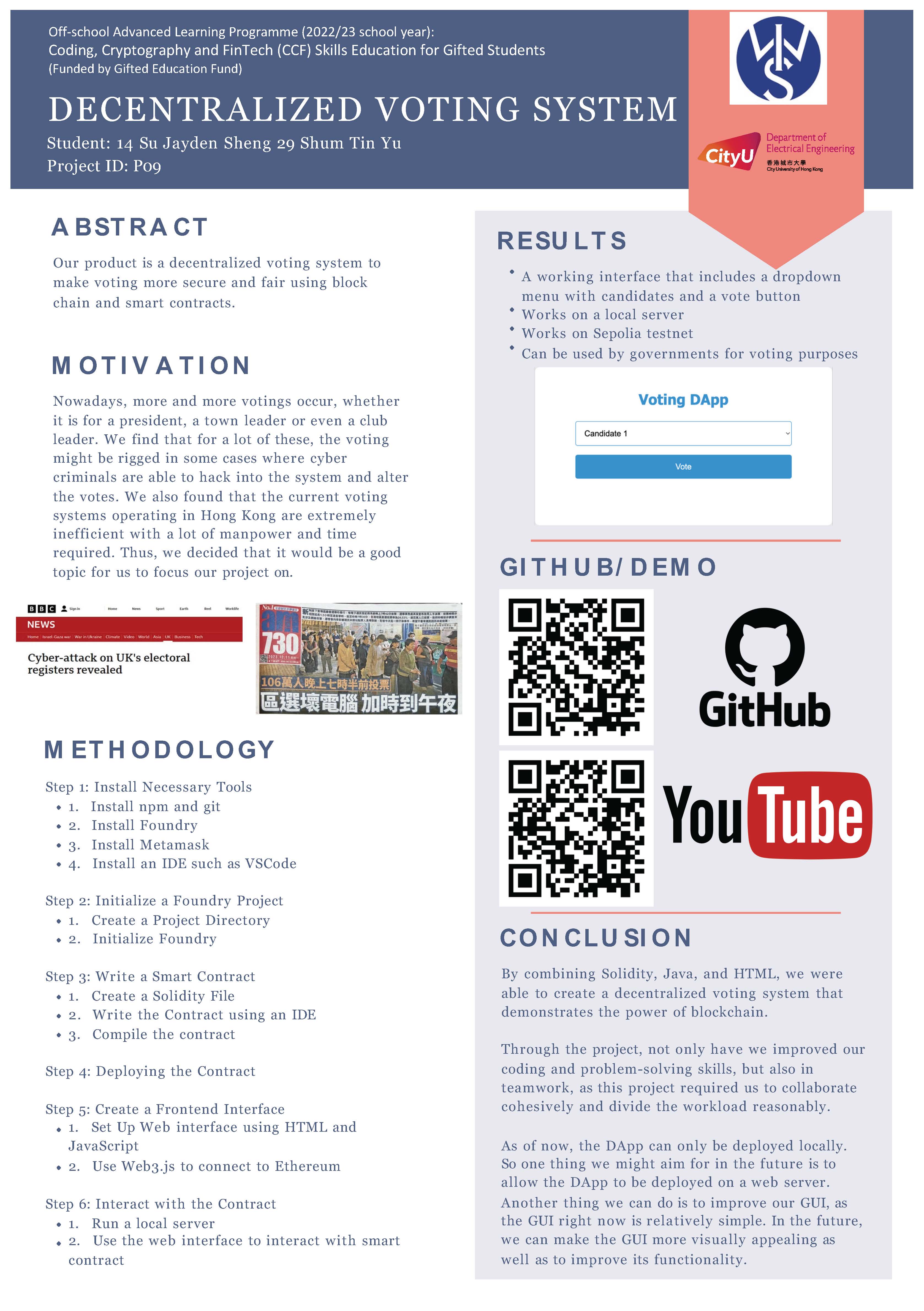 Our product is a decentralized voting system to make voting more secure and fair using blockchain and smart contracts.